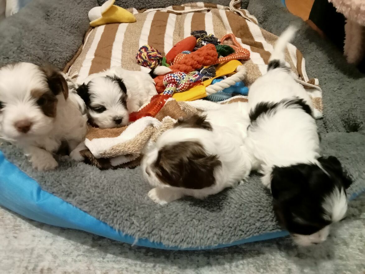 Witam. Dnia 16/01/26 urodziły się piękne szczenięta Yorkshire terrier biewer. 3 suczki i 1 piesek. Trzy kolorowe. Biało czarne i złote, albo biało czekoladowe i złote.Wychowywane w warunkach domowych wraz z rodzicami. Gotowe będą po szczepieniach. Oddane będą z microcipem, rodowodem, odrobaczone. Cena do negocjacji. DziękujęPowiadom o podobnych ogłoszeniach